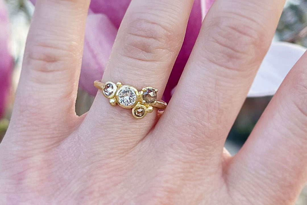 I love working with couples to create something one-of-a-kind and completely custom for their commitment to one another. All of my custom Commitment work is tailored, meaning I adapt pieces from my existing Commitment collection to suit your vision. Together, we’ll combine elements from my designs to create something uniquely yours. I do not recreate designs from other jewelers or the internet.