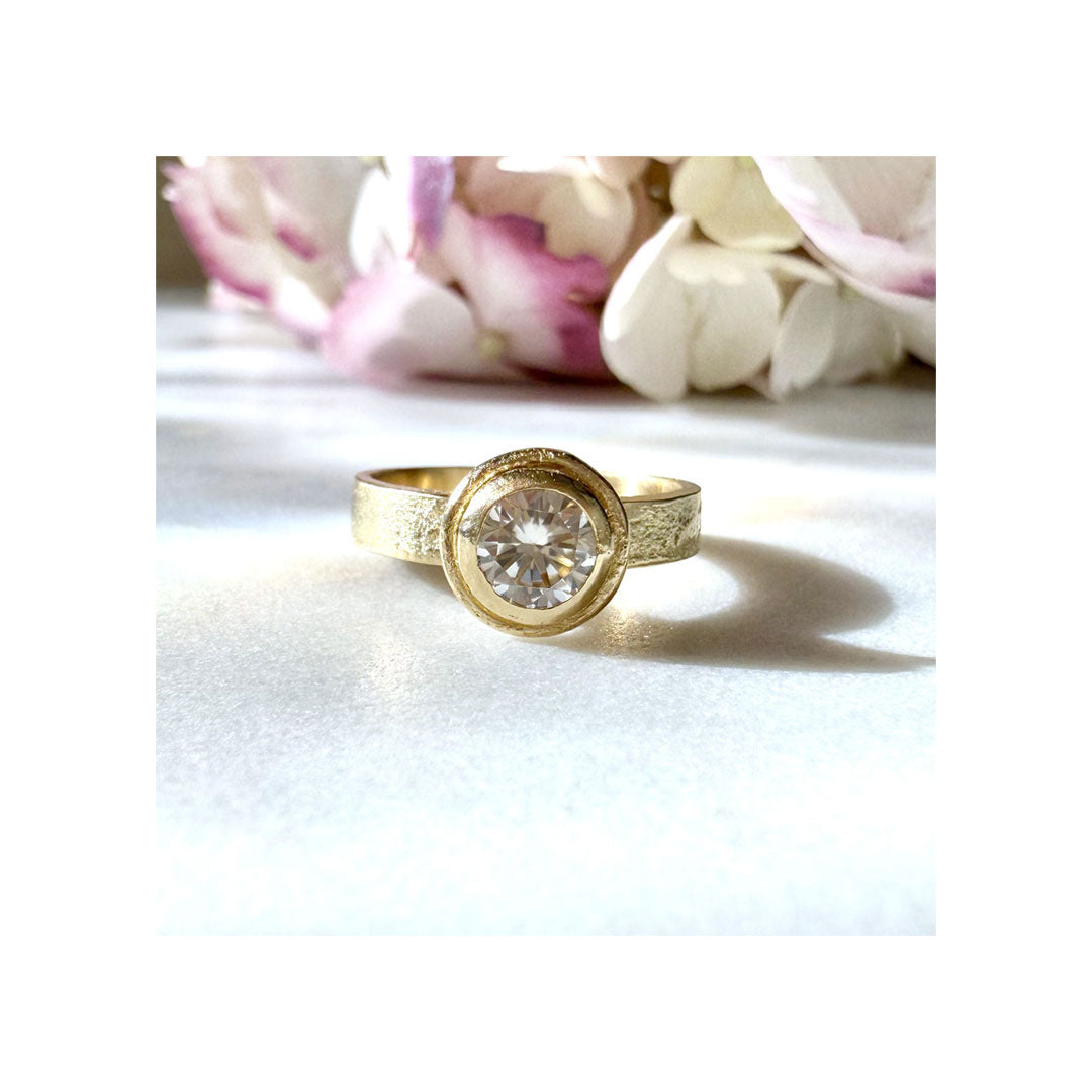 Starting with a client’s cherished family heirloom diamond, I handsculpted this entire ring and setting from wax and cast it in-house using the centuries-old lost wax casting technique.
