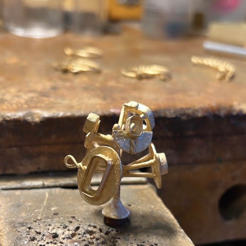 I’ve always seen myself as a sculptor, and I approach each piece as an individual work of art. After sketching the silhouette, I begin the real creative work: handcrafting a wax sculpture of the piece to define the dimension and details.