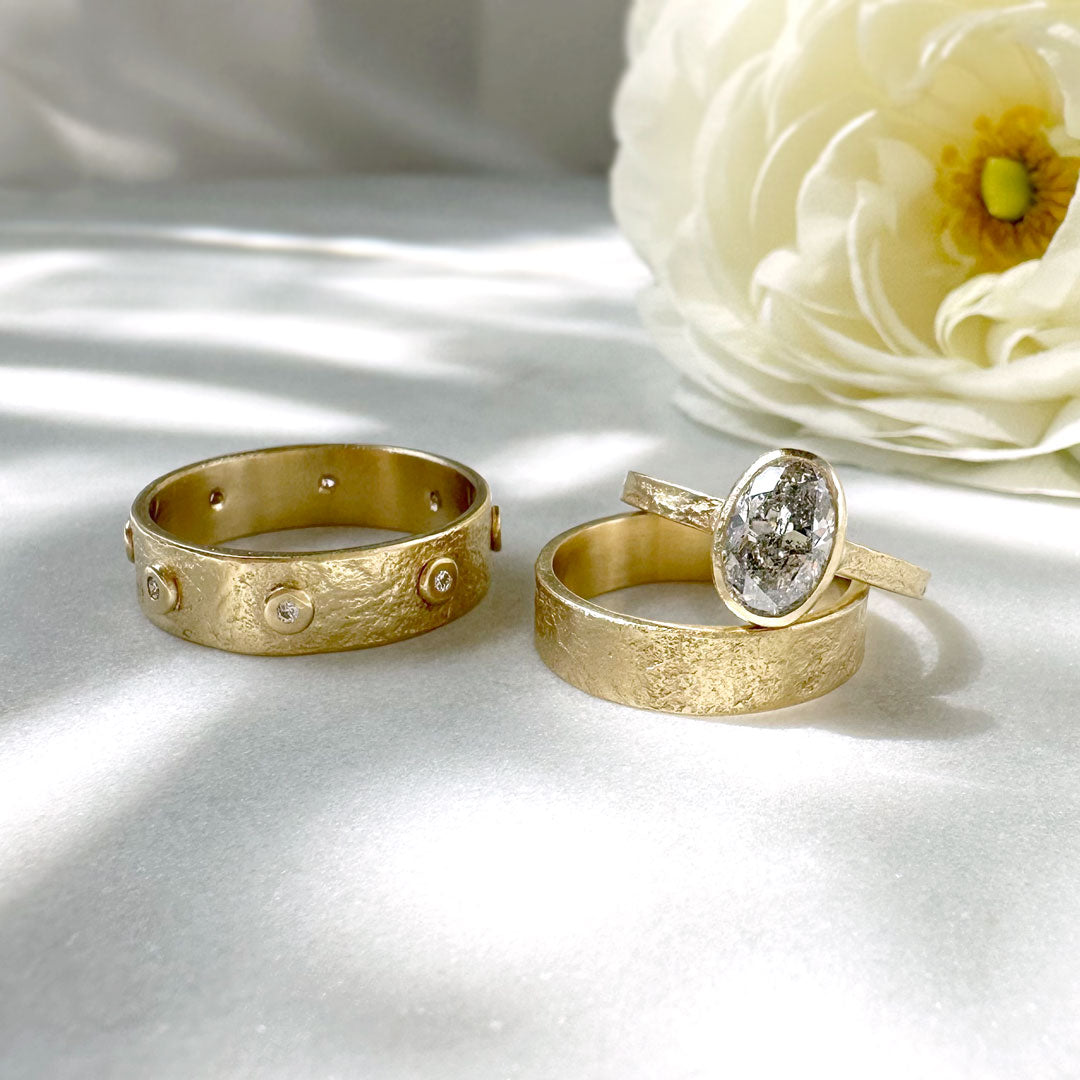 Every step of the creation process happens in my studio, from the initial wax sculpting to the final casting. It’s a labor-intensive practice, driven by my passion for slow, intentional craftsmanship and the making of truly special, artisanal pieces. During this process, the wax designs I've sculpted get ‘lost’ forever, melted away in the process of making plaster molds that eventually form the solid gold pieces. I finish the metal by hand, lightly, to preserve the soft marks that come from this process. The beloved qualities of my work—the organic texture, matte surface, classic sensibility—are inseparable from the way it’s made.